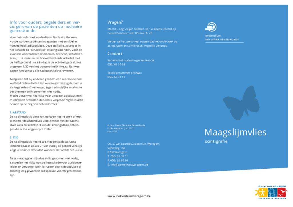 Brochure Maagslijmvlies scintigrafie Nucleaire geneeskunde download Infobrochure over dit onderzoek. terug naar overzicht