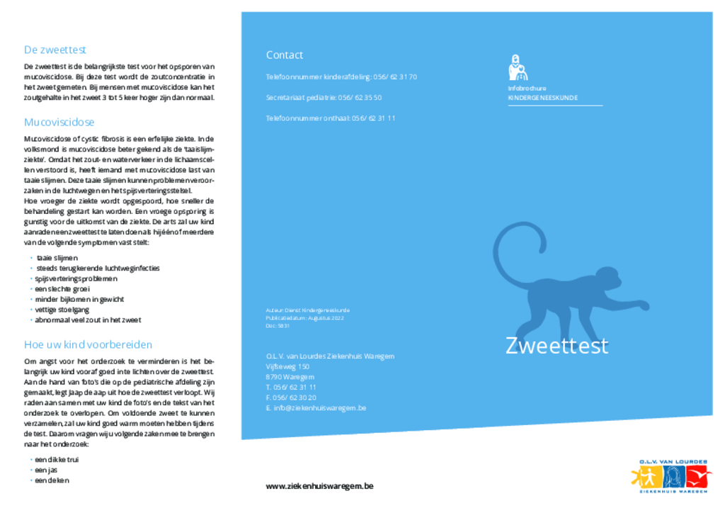Brochure Mucoviscidose: de zweettest Kinderafdeling Pediatrie download Infobrochure terug naar overzicht