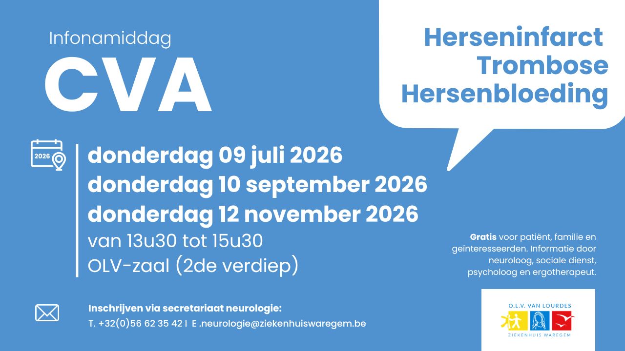 Gratis infonamiddag voor patiënten, familie en geïnteresseerden. Informatie door neuroloog, sociale dienst, psycholoog en ergotherapeut.