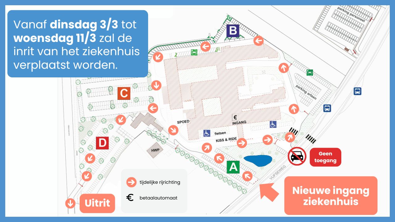 OPGELET | Tijdelijke wijziging inrit ziekenhuis